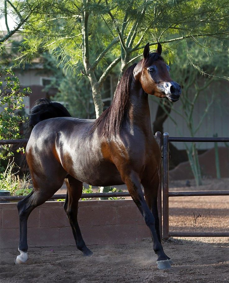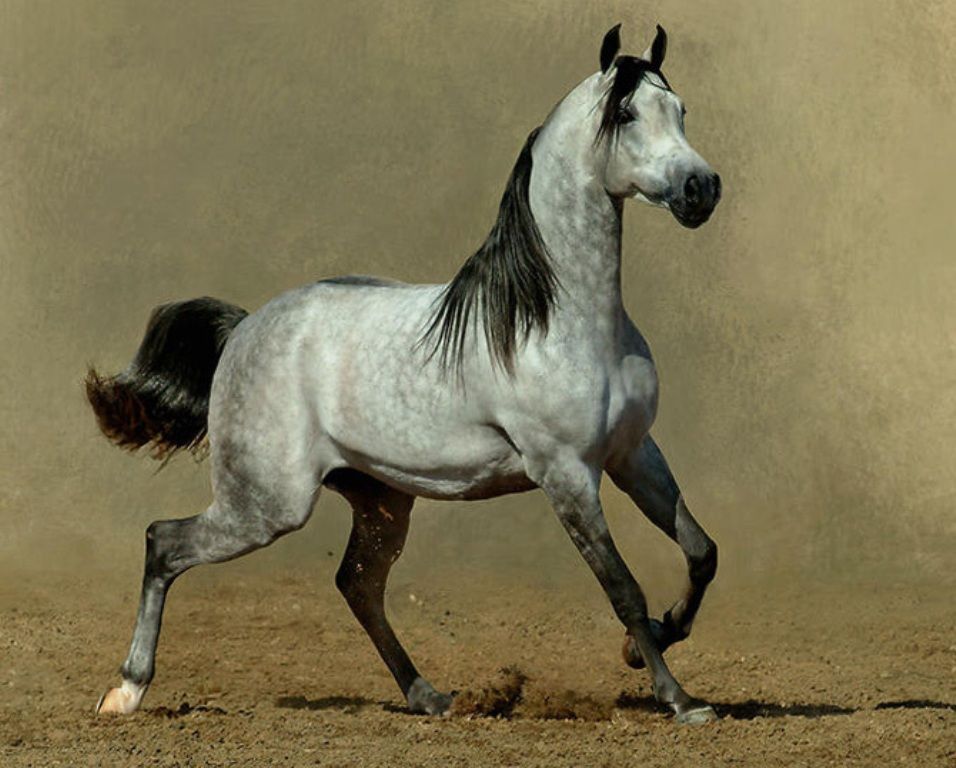 Сами лошадки не высоки в холке, около 1,5 метров, и отличаются уникальным вогнутым профилем. А еще небольшая голова, красиво выгнутая шея и “петушиный” хвост,который скакуны поднимают вверх во время быстрого бега.
