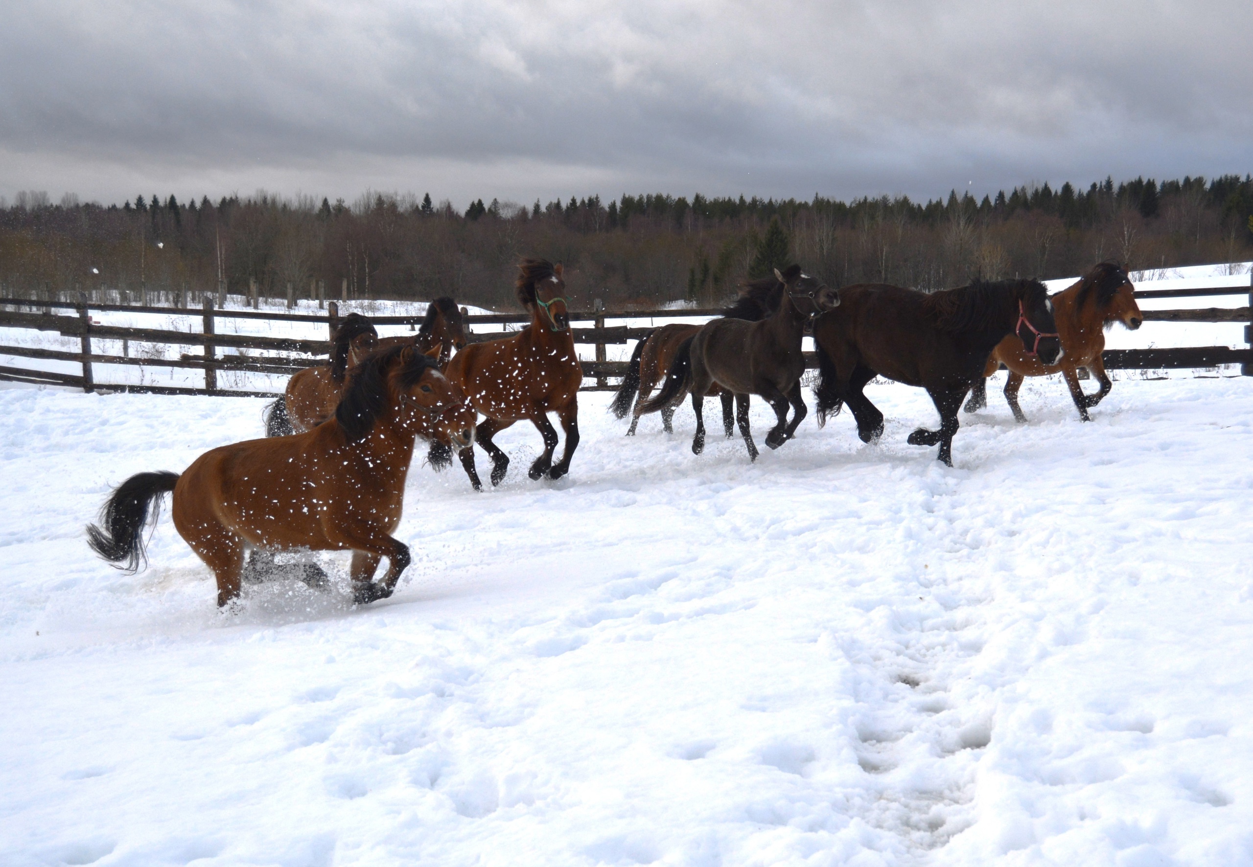 Что мы имеем на выходе? Небольших лошадок, максимум 160 см в холке, с потрясающими лохматыми челками, густыми гривами и метровыми хвостами. А зимой шерсть отрастает до 10-15 см, и спасает от морозов. Челки, и длинный хвост — это какая-никакая, а защита от насекомых летом.