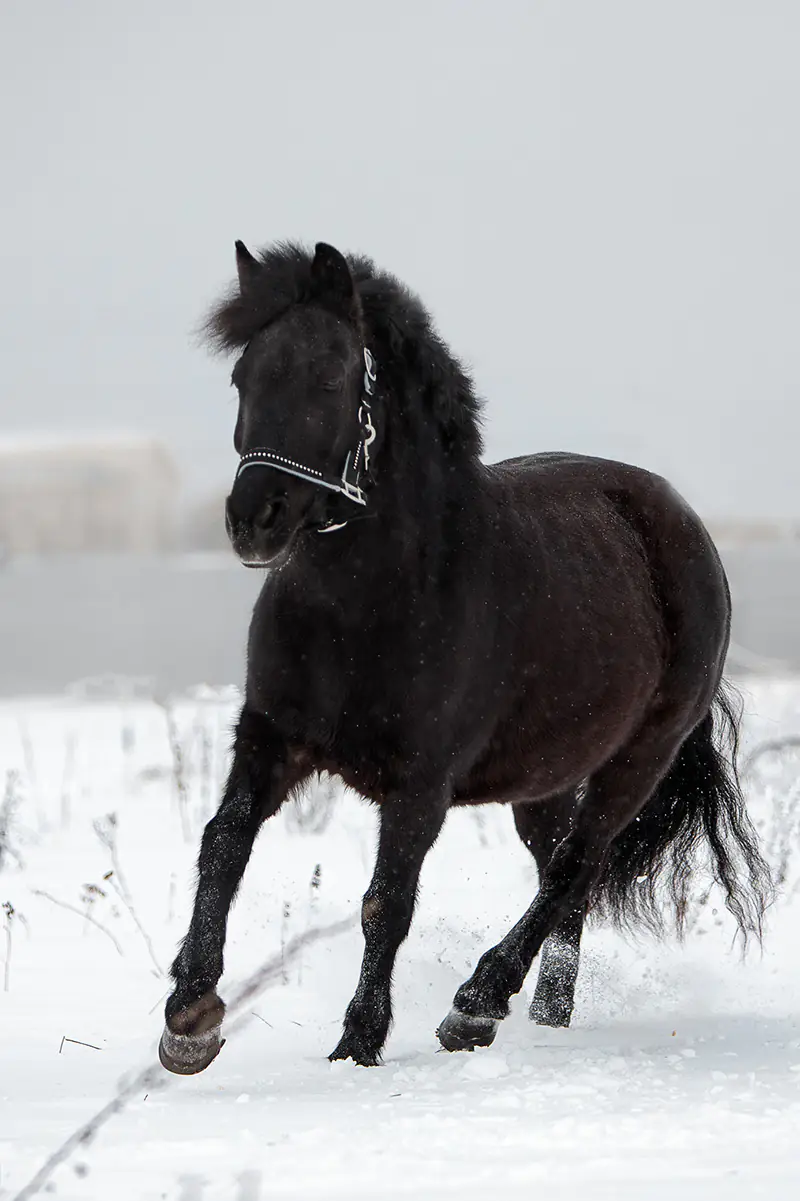 Во первых, масть, большинство пони этой породы вороной, тёмно – гнедой или бурой масти. А раз они однородны по масти и типу, их легко подбирать в пару и четверик в упряжи. Да, порода вынослива, всегда использовалась для перевозки грузов, да верхом на ней может проехать не только ребенок, но и не крупный взрослый.